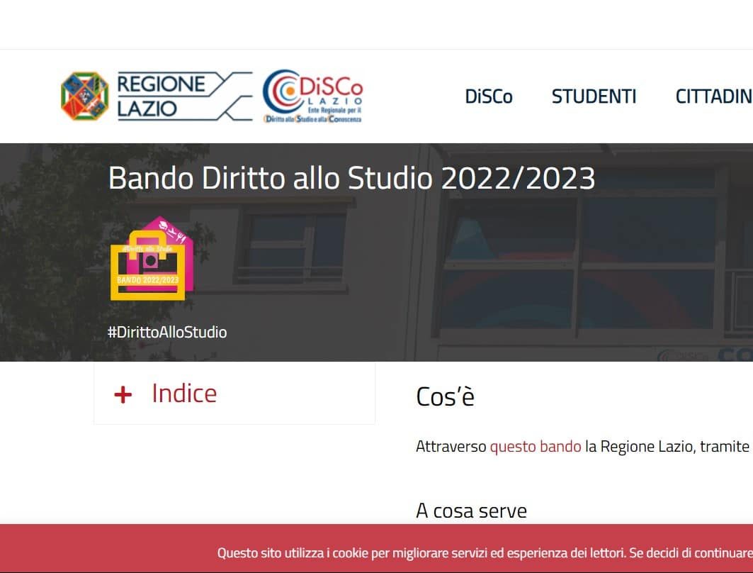 ” … Attraverso questo bando la Regione Lazio, tramite DiSCo, eroga i benefici a sostegno del diritto allo studio. Rispetto alle precedenti edizioni, quest’anno è stato incrementato il valore degli importi delle borse di studio e sono state innalzate le soglie di reddito necessarie per accedere ai benefici.